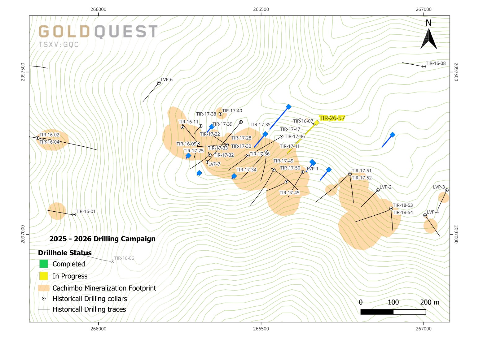At Cachimbo, drilling of hole TIR-26-57 began in early January and has now reached 450 metres, with a target depth of 500 metres. The program seeks to define a Mineral Resource and test new targets along the Romero-Cachimbo corridor (Figure 2).